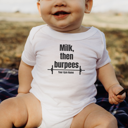 Milk, Then Burpees Baby Onesie Design